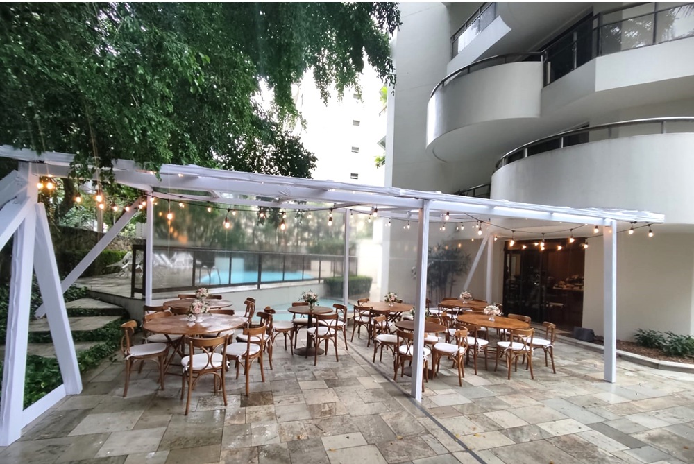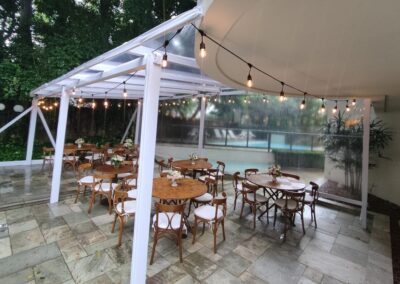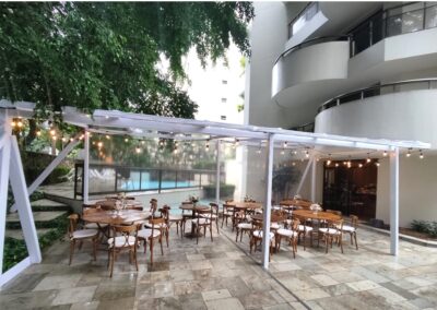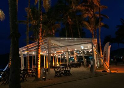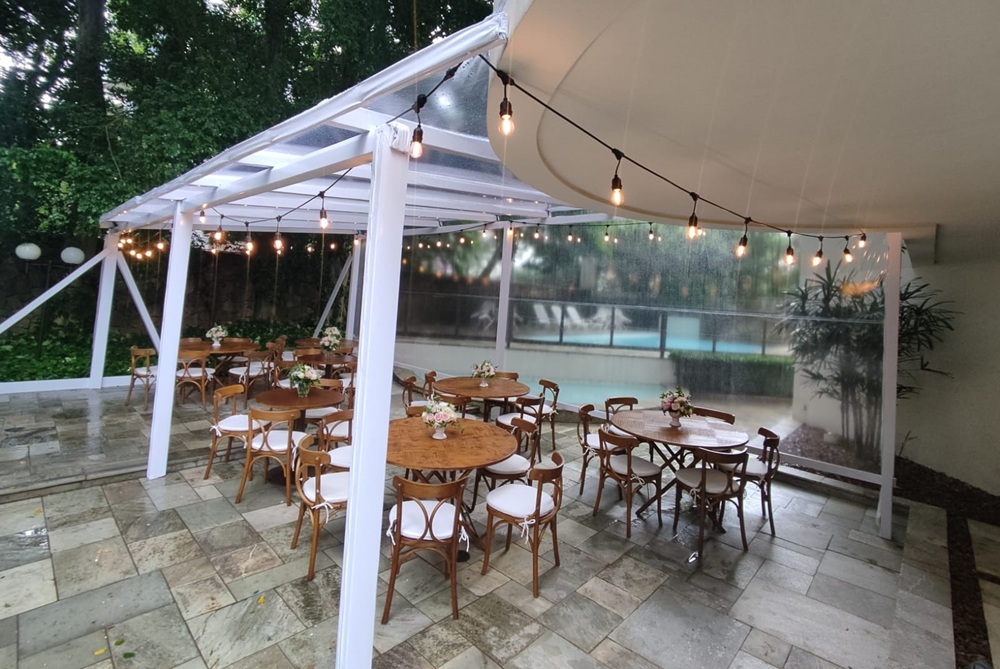 Indicadas para festas noturnas dão a sensação de pé direito alto e se mesclam com o jardim em seu entorno. No formato de 01 ou 02 aguas, medidas e formatos ilimitados.