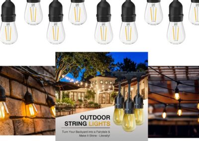 Com um sistema para emenda, você pode conectar e criar quantos metros precisar, e graças ao design o produto é adequado para uso externo, ou seja, ele pode ficar ao tempo, tomando chuva e sol, sem problema algum, as alças presentes na parte superior dos soquetes com abraçadeiras de nylon.